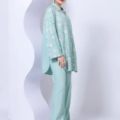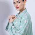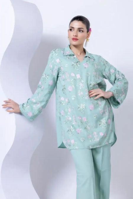 - Description:Â A short floral embroidered kurta featuring full sleeves and a wing collar.