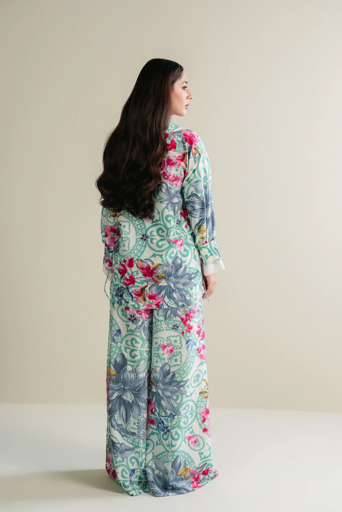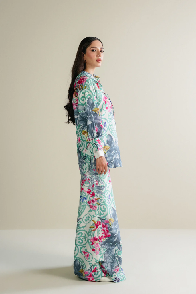 - This top made in multi-colored soft air-weave fabric in floral print features collar with placket detail, full length sleeves with scalloped cuff opening, round hem and side slits. The sleeves and placket have a tie-up detail.