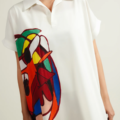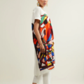 - Crafted from soft printed crepe, this dress features a Johnny collar and relaxed drop shoulders finished with cuff detailing. The straight-cut silhouette is complemented by a box pleat at the back, adding subtle volume and ease to the design.