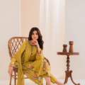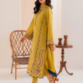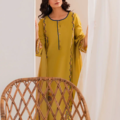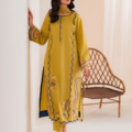 Elevate your wardrobe with this exquisite 2 piece embroidered outfit in a serene lime green hue. Crafted from premium quality lawn, this ensemble features a beautifully embroidered shirt adorned with delicate threadwork, with gold button detailing on the neckline that exudes elegance and cultural charm. The embroidery showcases intricate floral motifs and traditional patterns, adding a touch of sophistication to your everyday or festive look. The matching trousers are tailored for comfort and style, completing the outfit with a graceful silhouette.