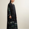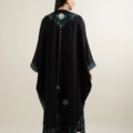 - Crafted in crepe, this article features a V-neckline adorned with lace insertions and delicate crystal hangings along the center front. Designed in a kaftan silhouette, it includes a front slit trimmed with lace and lace detailing at the sleeve openings for an elegant finish.