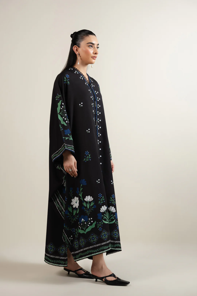 - Crafted in crepe, this article features a V-neckline adorned with lace insertions and delicate crystal hangings along the center front. Designed in a kaftan silhouette, it includes a front slit trimmed with lace and lace detailing at the sleeve openings for an elegant finish.