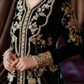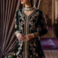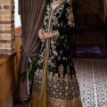 This ensemble, with sequinned velvet panels, intricate organza borders, and a graceful zari dupatta, captures the beauty of a love once lived and relived. Golden and silver naqshi, paired with artisanal tassels, evoke a sense of nostalgic elegance.