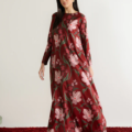 - This dress, made in soft crepe fabric, in floral print, features crew neckline on the front, tie-up detail & V-neck at the back, full length sleeves and flared hem.