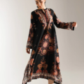 Envelop yourself in bohemian elegance. This captivating embroidered dress features a rich black base adorned with an intricate, all-over print in warm hues of terracotta, cream, and subtle green. The flowing silhouette is accentuated by beautifully detailed patterns that evoke a sense of global artistry, while the tassel-accented neckline adds a touch of playful sophistication. This dress is a statement piece, perfect for those who appreciate unique design and effortless grace.