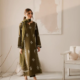 Upgrade your style in our printed mustard light khaddar kaftan featuring a boat neckline.