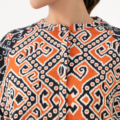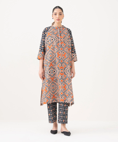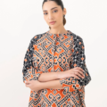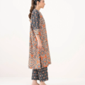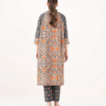 Upgrade your style in our printed black and rust light khaddar drop shoulder shirt featuring a band neckline with placket.