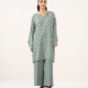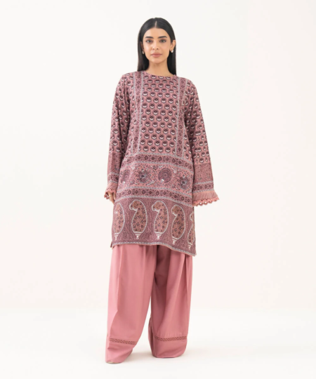 Printed With Lace Finish And Top Stitch Front Panel, Printed Back Panel, Round Neckline, Full Sleeves, Mid Length
