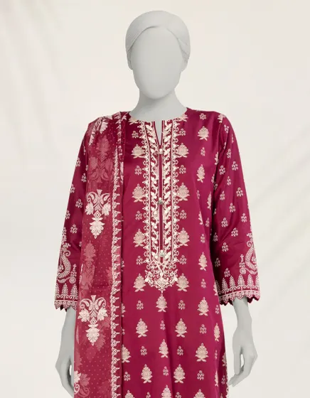 Collection: Embroidered Paste Print Cambric Shirt – Dyed Basic Cambric Trouser – Basic Paste Print Impure Chiffon Dupatta Wear Type: Regular Fit