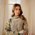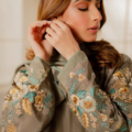 A vibrant ash silver grey ensemble features an elongated shirt adorned with our signature Vintage style birdie embroidery, with nature-inspired floral motifs. It features beautiful 3D motifs and intricate thread work with hints of sliver, light gold and tilla. This gorgeous shirt is paired with tonal trouser making it a classic timeless piece.