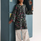 This subtle pastel base printed design features scattered clusters of delicate peach and cream flowers shirt with embroidered lace appliqué at hem and cuff creating an elegant and romantic look.