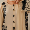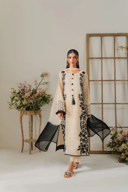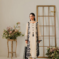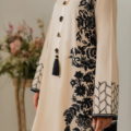 This elegant off-white two-piece karandi outfit is a celebration of timeless craftsmanship and subtle luxury. The shirt is adorned with exquisite hand aari embroidery delicately spread across the fabric. The beauty of the ensemble is further elevated with handmade embellishments and dainty tassels along the neckline, adding texture and artisanal charm. The soft karandi fabric provides a structured yet comfortable fit, perfect for both festive and semi-formal occasions. A two-toned dupatta is available separately, designed to complement and complete the look with understated elegance.