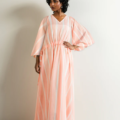 - This striped dress made in air-weave fabric features a v-neck, Full sleeves, flared bottom and side slits. The dress has a tie-up detail on waist.