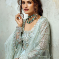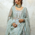 Grace yourself in the beauty of timeless elegance with “Silver Screen”. This ensemble features intricate hand-embellished embroidery and sequins on net fabric, complemented by a gradient-printed lehenga with sequinned organza lace. The sequinned net dupatta, handmade tassels, and mirror lace finishing add an ethereal charm, making Silver Screen a design meant to celebrate you in every moment.