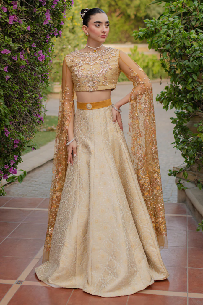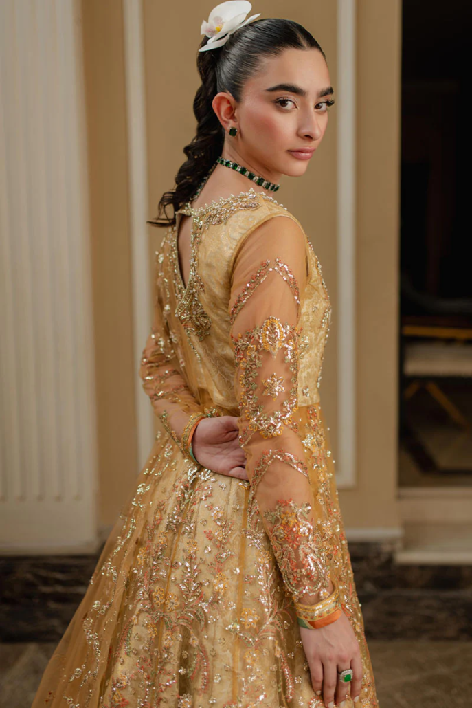 - Embroidered, sequined and hand embellished front yoke (Net)