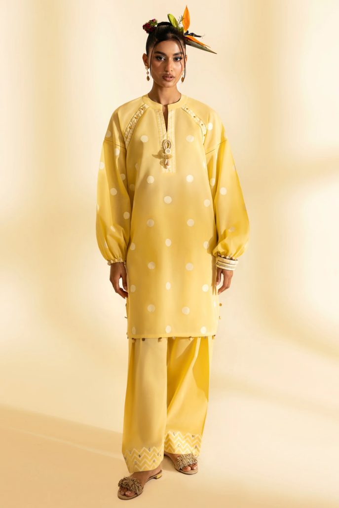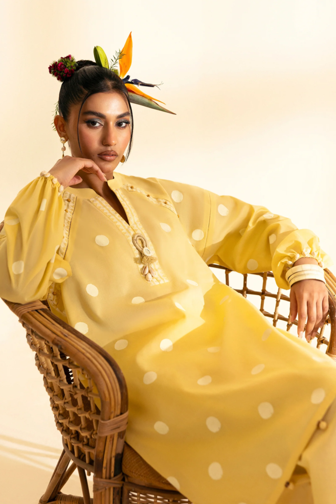 SOLÉA – A radiant ode to artisanal craftsmanship, where heritage meets contemporary ease. Set in a butter lemon hue, this polka dot block-printed shirt exudes effortless summer charm, brought to life through intricate detailing and meticulous handwork.