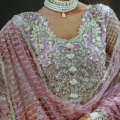 - Embroidered, sequinned & hand embellished front yoke (net)