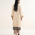 Dyed With Printed Accent And Lace Finish Front Panel, Dyed With Printed Accent Back Panel, Round With Placket Neckline, Full Sleeves, Long Length