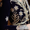 - Embroidered, sequinned and hand embellished velvet for back yoke