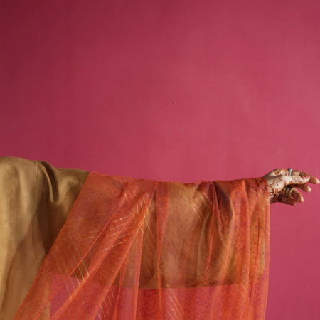 Minimal yet magnetic, it carries the poetry of fall — strength in stillness, elegance in understatement. Paired with our separate silk dupattas, Zareen transforms seamlessly into a statement of evening allure.