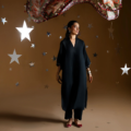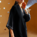 Like autumn nights draped in quiet mystery, Zareen flows in obsidian-hued karandi, paired with matching pants for an unhurried, graceful silhouette. Delicate embroidered cross motifs trace the sleeves, adding a touch of timeless refinement to its minimal charm.