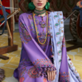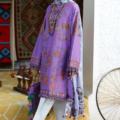 Zariah – A poetic fusion of tradition and modernity, this amethyst-hued masterpiece is adorned with intricate tribal paisley embroideries, weaving timeless artistry into contemporary sophistication. The ethereal soft lilac cotton net dupatta, framed with exquisitely embroidered paisley borders, drapes like a dream, adding an effortless allure to every step. Paired with printed dove-colored trousers, this ensemble is light, feminine, and undeniably chic—a sartorial ode to the Zaha girl who embodies culture with an effortlessly modern twist.