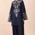 Zarif — where effortless street-smart cool meets boho artistry, crafted for the Zaha girl who turns every moment into a statement. This textured midnight blue coord set is a celebration of boldness and grace, with delicate ivory chain stitch botanical embroideries that dance along the neckline and bloom on the sleeves, while earthy-toned buttons with thread details add that signature handcrafted charm.