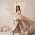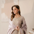 Composed with subtle tones on a rawsilk canvas, the kurta is adorned with delicate hand-aari embroidery with floral imagery and features fabric manipulated details. Paired with a pure medium silk dupatta, this is going to be a head-turner for you!