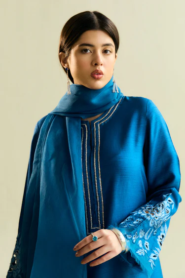• Pants: Complementing the top, the embroidered pants bring a cohesive sparkle to the ensemble. The embellishment on the pants creates a seamless flow for modern luxury.