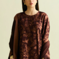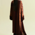 • Shirt: The shirt is crafted from a rich, luxurious fabric with a deep, warm brown base that provides a sophisticated, earthy undertone. The rust-colored gara embroidery is meticulously done that stands out beautifully against the dark brown fabric, creating a stunning visual appeal. The sleeves of the shirt are a standout feature, drawing attention with bold tassel details.