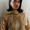 •Dupatta:A plain chiffon georgette dupatta with silk-finished edges completes the ensemble—adding softness and quiet luxury to the overall composition.